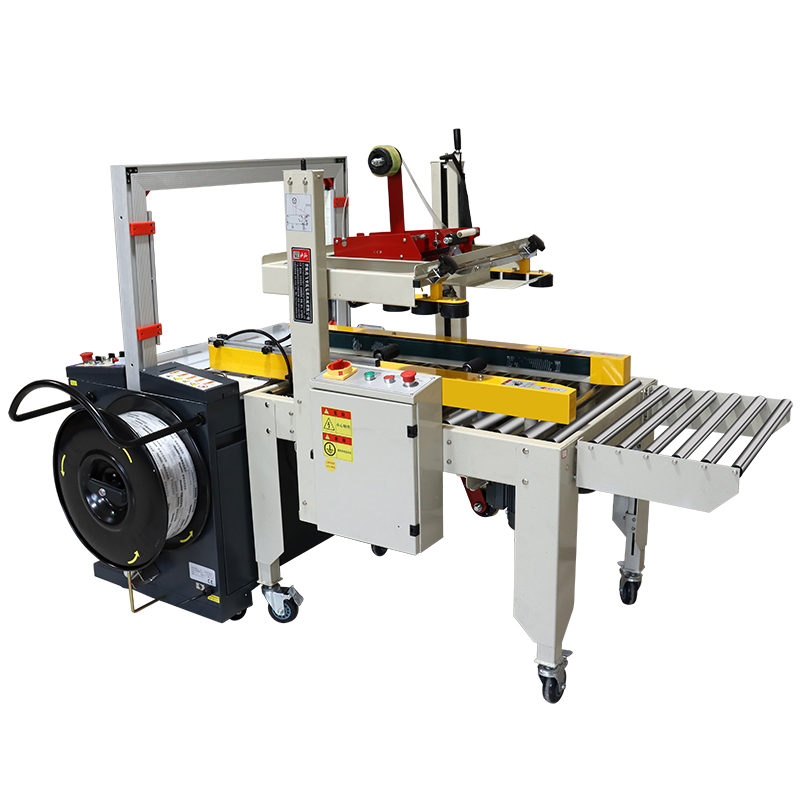 封箱打包一體機(jī)是一款集封箱、打包為一體的自動化設(shè)備。由全自動打包機(jī)和封箱機(jī)組成,該機(jī)采用將封箱機(jī)皮帶加長的原理,用封箱機(jī)的驅(qū)動皮帶將物品輸送到打包機(jī)的臺面上,既解決了客戶封箱打包整體作業(yè)的需求,同時大大為客戶節(jié)省了生產(chǎn)成本,是一款經(jīng)濟(jì)實(shí)用的自動化包裝設(shè)備主要適用于紙箱包裝經(jīng)濟(jì)快速,容易調(diào)整,可一次完成上下封箱動作,,也可以與流水線配套使用,廣泛應(yīng)用在家用電器、紡織、食品、百貨、醫(yī)藥、化工等行業(yè)。