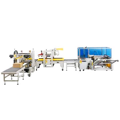 該自動包裝流水線集自動開箱、自動折箱、自動封箱、自動打包等功能于一體,包含開箱機、折蓋封箱機、四角邊封箱、全自動打包機等設備。應用范圍廣、占地面積小、操作簡單、性能穩定。可大大減少勞動力,提高生產效率,降低生產成本。為國內數家大型知名企業選用。同時還可根據客戶包裝需要的不同而進行個性化設計和制造。